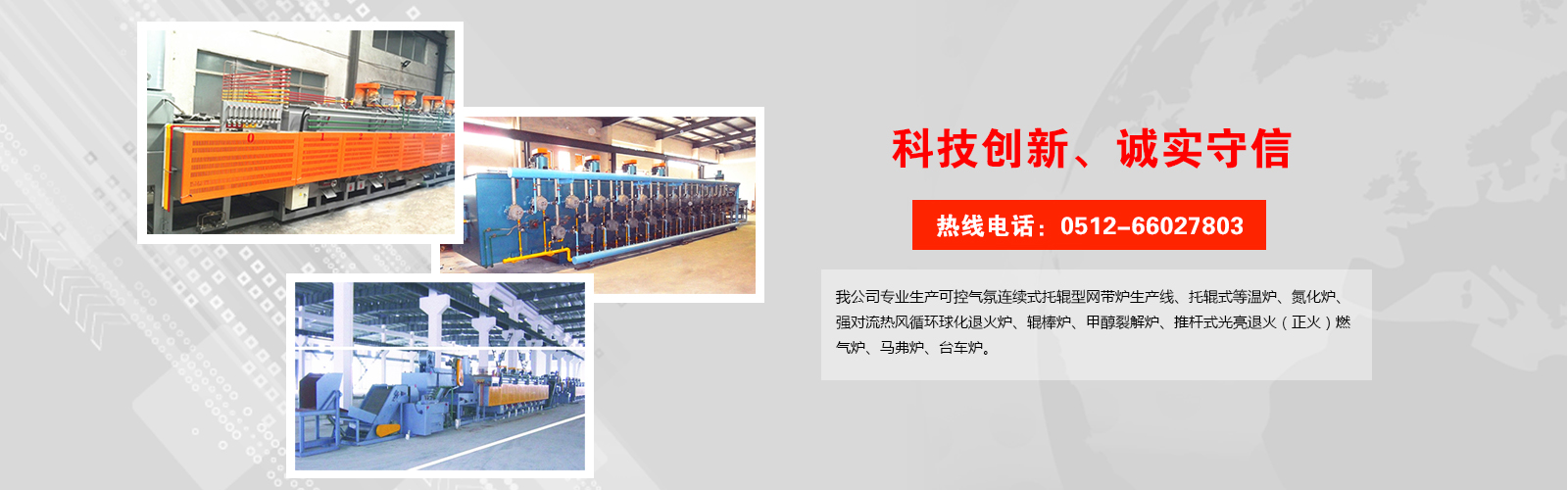 苏州科能工业炉有限公司座落于有着“神州水乡第一镇”美誉的苏州甪直镇,公司专业生产可控气氛连续式托辊型网带炉生产线、托辊式等温炉、(并有托辊式等温热处理对外加工、三气分析仪、炉温跟踪仪对外检测)氮化炉、强对流热风循环球化退火炉、辊棒炉、甲醇裂解炉、推杆式光亮退火(正火)燃气炉、马弗炉、台车炉。主要用于紧固件(汽车专用件)、五金工具、轴承、链条、铸(锻)件及金属线材等的热处理,对工业产品品质的提高具有重要的功效。